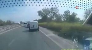 Bursa’da bir sürücünün tehlikeli şekilde makas atması kazaya ramak bıraktı. O anlar başka bir aracın kamerasına saniye s...