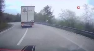 Bursa'nın İnegöl ilçesinde virajı alamayan su yüklü tırın devrildiği kazada sürücü yaralandı. Tırın devrilme anı araç ka...