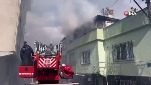 Bursa'da 3 katlı binanın çatı katı alevlere teslim oldu