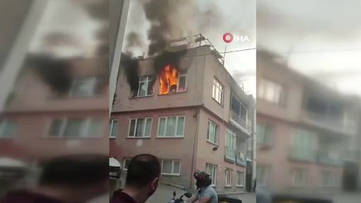 Bursa'da 3 katlı binanın son katı alev alev yandı. O anlar saniye saniye amatör kameraya yansıdı.