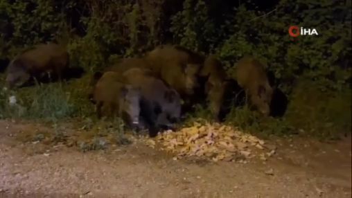 Bursa'da aç kalan domuz sürüsü şehir merkezine indi