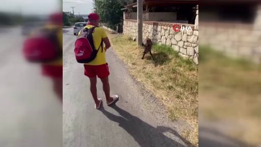 Bursa'da bir vatandaş, aç kalarak şehir merkezine inen bir domuzu bisküvi ile besledi. O anlar saniye saniye amatör kamera ile kaydedildi.