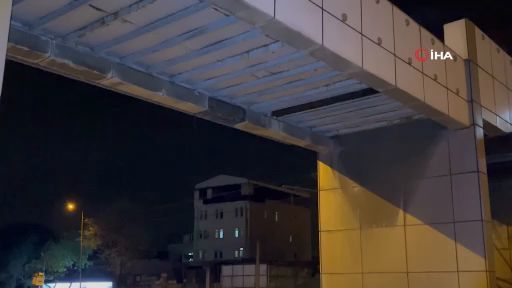 Bursa'da seyir halindeki araçların bulunduğu yola, üst geçitten kopan bağlantı demiri düştü. Olayda büyük bir facia kıl payı atlatılırken, bir aracın iki lastiği parçalandı.