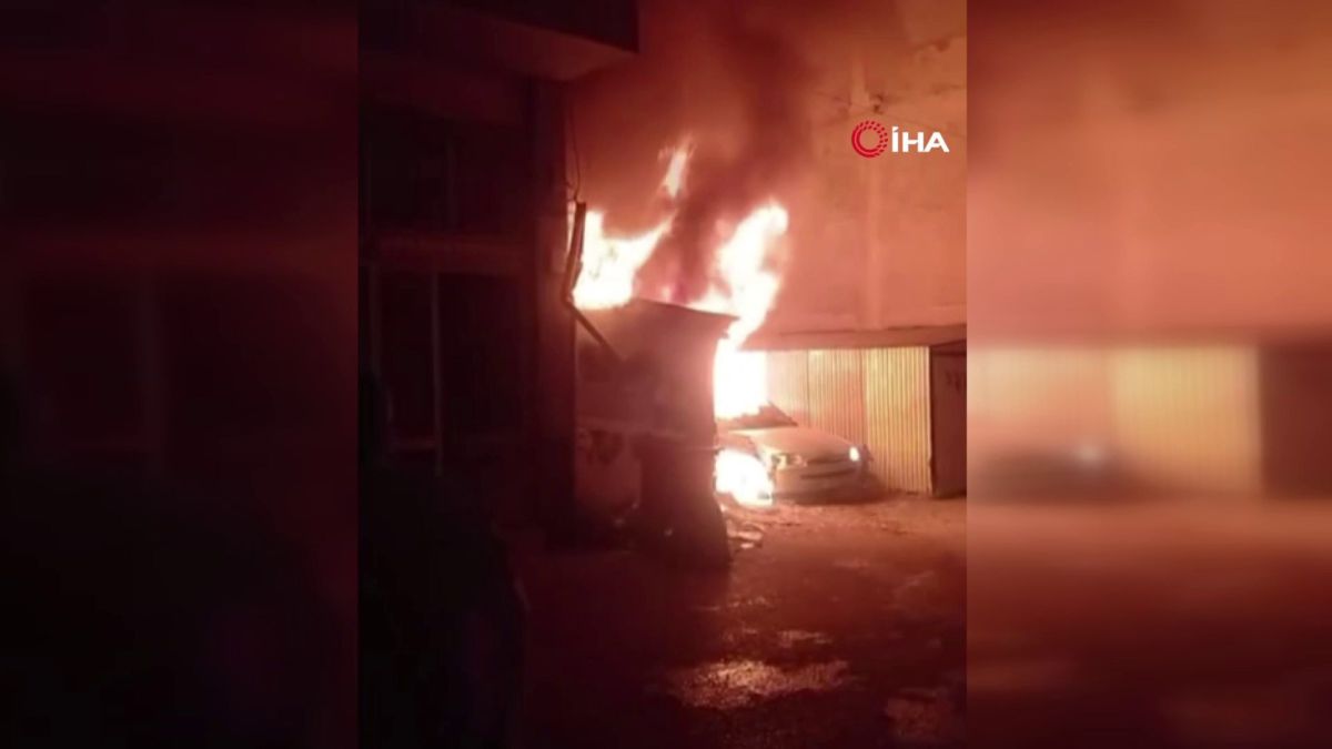 Bursa'da garajda çıkan yangın sonrası park halindeki 2 otomobil alev alev yanarak kullanılamaz hale geldi.