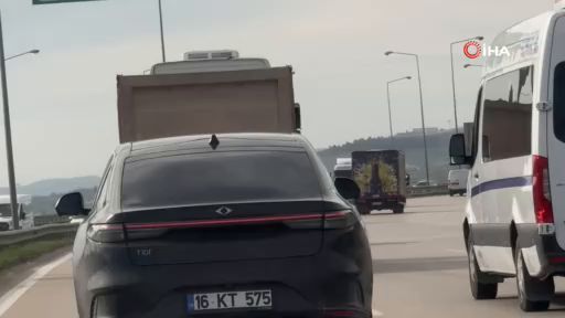 Bursa'da yasak olan en sol şeride giren hafriyat kamyonu süratli şekilde ilerleyerek tehlike saçtı.