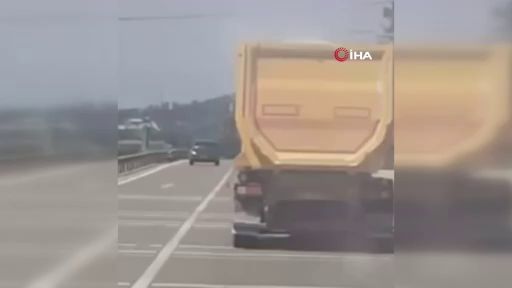 Bursa'da bir kamyonun dorsesinde yüklü olan kumlar, rüzgarın etkisiyle yola döküldü. Trafiği tehlikeye atan kamyon sürücüsü kameraya yansıdı.