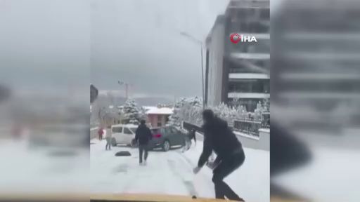 Bursa'da etkili olan kar yağışı hayatı olumsuz etkilerken, kentte korku dolu anlar yaşandı. Yoğun kar yağışı nedeniyle kontrolden çıkan bir otomobil, kayarak yolda bulunan vatandaşların üzerine doğru ilerledi. Büyük panik yaşayan vatandaşlar, kendilerini son anda kenara atarak kurtuldu.