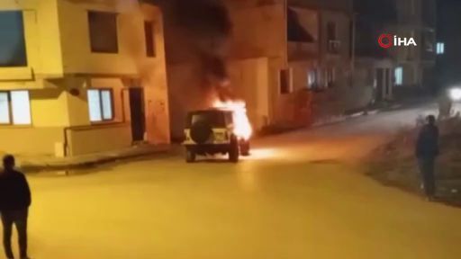 Bursa'nın Karacabey ilçesinde lüks cip alev alev yandı. O anlar kameraya yansıdı.