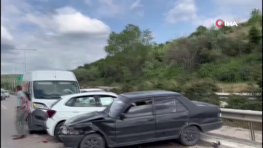 Bursa'da otobanda meydana gelen zincirleme kazada 3 araç birbirine girdi. Kazada, şans eseri yaralanan olmadı.
