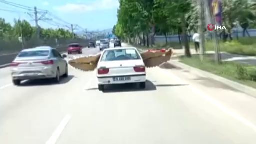 Bursa'da otomobille çelenk taşıyan sürücü kameraya yakalandı. Gündüz vakti otomobilin bir camından diğer camına çıkardığı çelenk ile şehir turu atan şahıs, trafikteki diğer sürücülerin güvenliğini hiçe saydı.