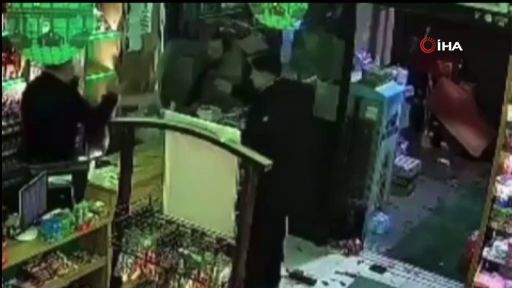 Bursa'da bir markette para üstü nedeniyle çıktığı iddia edilen tartışma kısa sürede kavgaya dönüştü. Öfkelenen müşteri, eline geçirdiği ürünleri iş yeri sahibine fırlatarak dükkana zarar verdi. Yaşanan arbede anbean güvenlik kamerasına yansıdı.