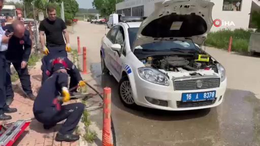 Bursa'da polis arabasına giren yılanı itfaiye ekibi çıkardı