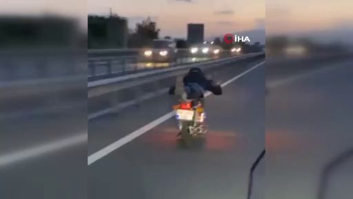Bursa'nın İnegöl ilçesinde bir kişi, üzerine yatarak kullandığı motosikletle trafikte tehlikeli şekilde seyretti. Kara yolunda zaman zaman hızını 125 kilometreye çıkaran sürücüyü görenler, o anları cep telefonuyla kaydetti.