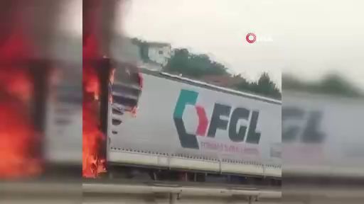 Bursa'da İstanbul yolunda seyir halinde olan tır sürücüsü, dumanların çıktığını görünce emniyet şeridine çekti. Tır, bir süre sonra alevlere teslim oldu.