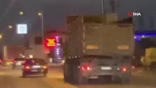 Bursa'da bir tır sürücüsü önce makas attı, daha sonra otomobillere yol vermedi. Tır sürücüsünün tehlikeli hareketleri kameraya yansıdı.