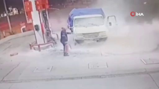 Bursa’da bir akaryakıt istasyonuna gelen kamyonet, yakıt aldığı esnada alev aldı. Durumu gören çalışan hemen aldığı yangın tüpüyle facianın önüne geçerken, o anlar güvenlik kamerasına anbean yansıdı.