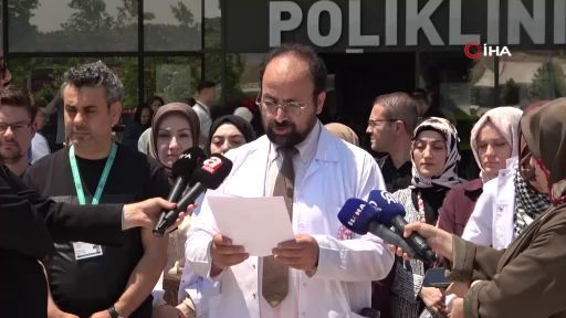 Bursa Şehir Hastanesi doktorları, İsrail'in Filistin'e yönelik saldırılarında işlenen insanlık suçu hakkında basın açıklaması gerçekleştirdi. Beyaz önlükleri ile gazetecilerin karşısına çıkan doktorlar, son dönemde gündem olan sokak hayvanlarının uyutulmasına da vurgu yaparak, "Hayvanların yaşam hakkını savunanlar, aynı merhamet duygusunu Filistin'deki masum çocuklar için de göstermeli" ifadelerini kullandı.