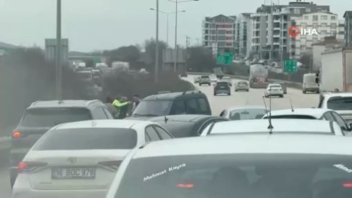 Otobanda tehlike...Ters yöne giren araç trafiği kilitledi