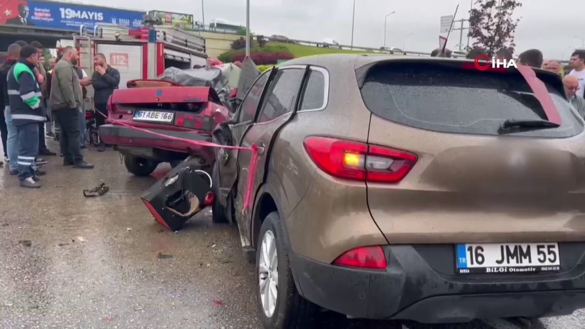 Bursa'da yağışlı havanın etkisiyle kontrolden çıkan Tofaş Şahin marka otomobil, refüjü aşıp ters şeride girdi. Jipin çarpmasıyla hurdaya dönen otomobilde 2 kişi ölürken, jip sürücüsü ise ağır yaralandı. Feci kaza güvenlik kamerasına böyle yansıdı.
