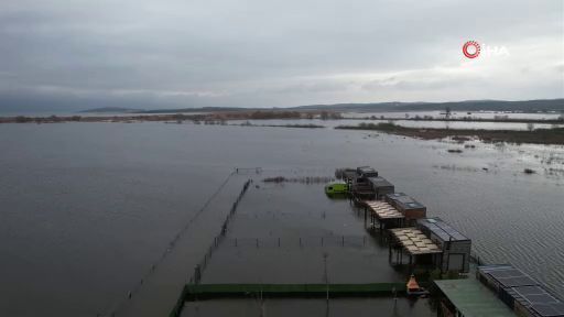 Bursa'da Ulubat Gölü'nün taşmasıyla göle komşu Akçalar Mahallesi'nde onlarca tiny house ve hobi evi sular altında kaldı. Göl havzasının ne denli geniş bir alan yayıldığı havadan gözler önüne serildi.