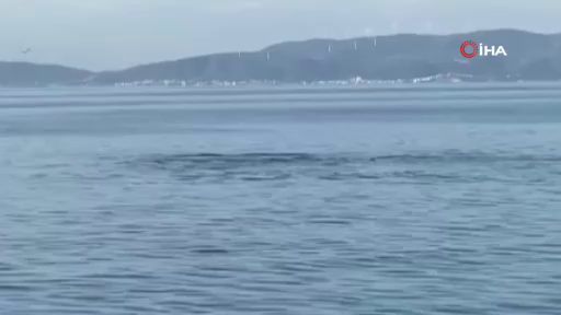Bursa'nın Mudanya ilçesinde yunus balıkları denizde gösteri yaptı.